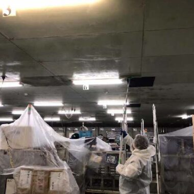 天井の張り替えなど大規模改修を行わず、確実な効果を実現します。スーパーマーケットや食品工場などの大規模施設では、天井・バックヤード・加工場などにカビが発生しやすく、日常清掃では根本的なメンテナンスが困難です。